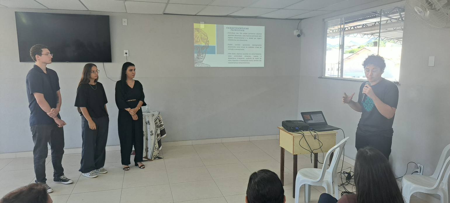 A atividade abordou temas importantes como Inclusão Escolar, TEA, TOD, TDAH, Deficiência Intelectual, Ansiedade e estratégias de manejo, organizados em seis grupos de trabalho, envolvendo 41 discentes.